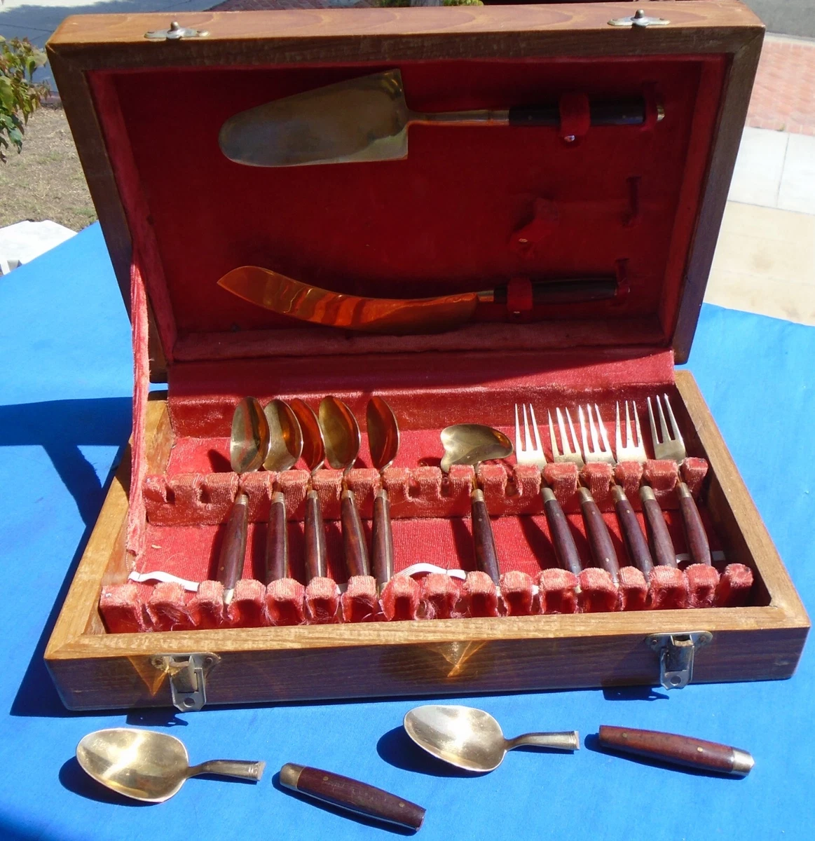 Silverware Set James Thailand 13 Piece Bronze Brass Dessert Wood Case Ebay